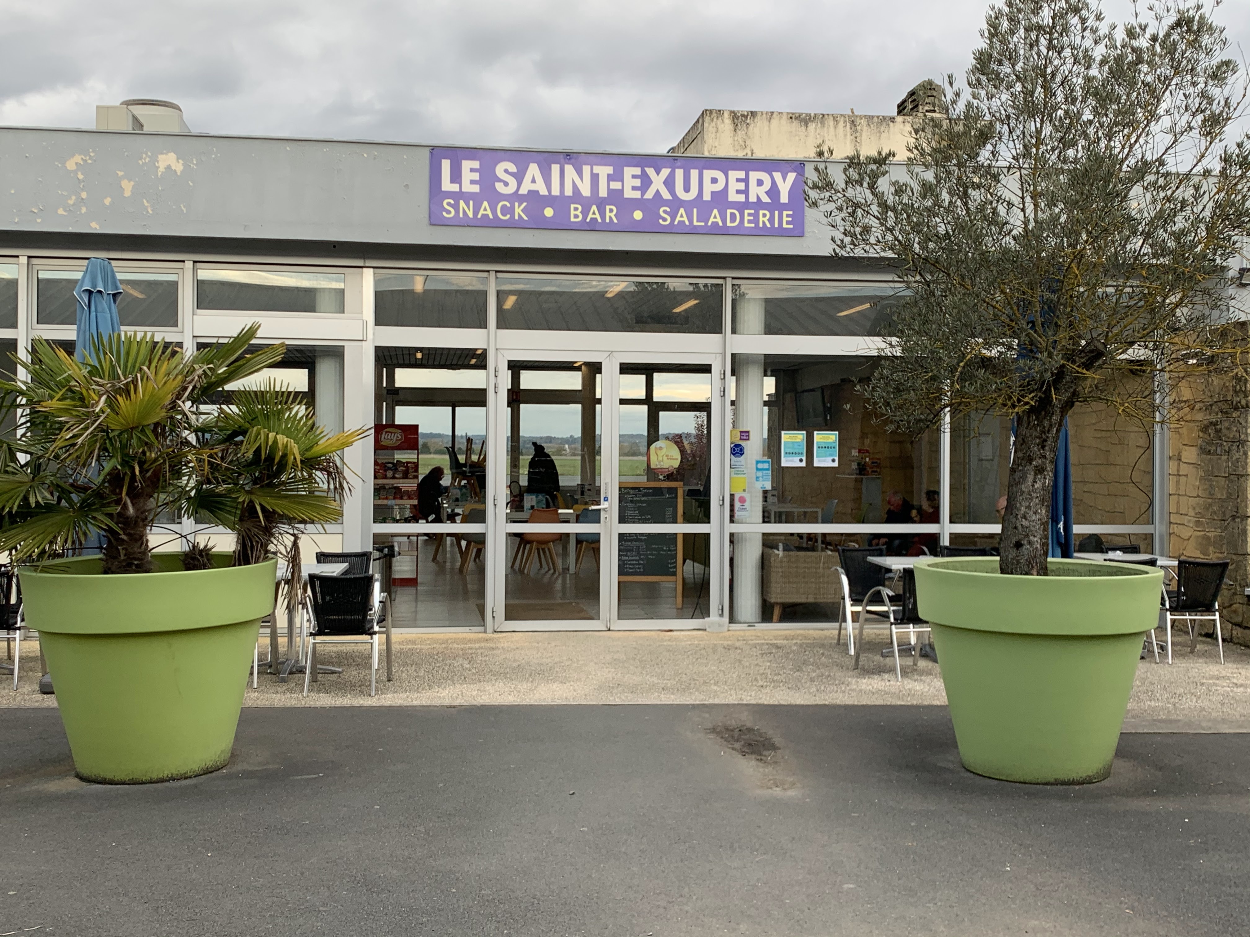 Mois d'août 2017. Avion en retard : on va attendre, en consommant, au restaurant Le Saint Exupéry. Toutes les tables étaient prises soit par des consommateurs, normal, soit par les déchets et papiers laissés par les précédents consommateurs. Pour pouvoir consommer, en terrasse, nous sommes allés chercher les consommations et avons dû nettoyer nous mêmes la table du mieux qu'on a pu (mouchoirs en papier). Personne n'est venu nettoyer les autres tables le temps que nous sommes restés (une bonne demi-heure). La terrasse et les tables étaient dans un état de négligence absolue. Bergeracois de cœur et d'adoption j'ai eu honte de nous, français, pour ma belle-mère anglaise que j'accompagnais et pour tous les voyageurs anglais ou français qu'on accueille de façon aussi cavalière voire insultante.