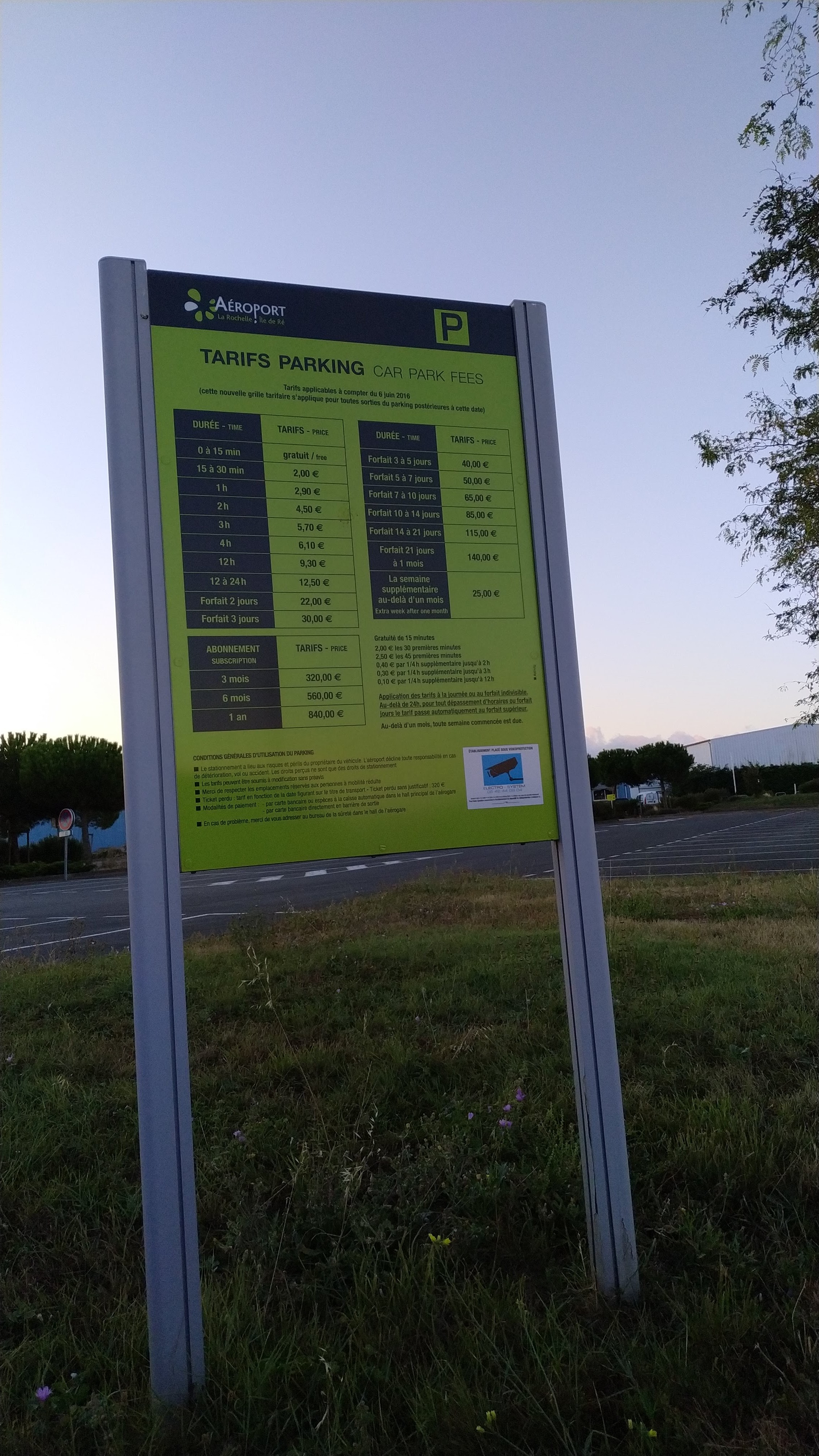 De retour de Porto, atterrissage à Bordeaux avec une journée de retard suite à grève des controleurs aériens...arrivés à la Rochelle par voiture à minuit et là.....impossible de récupérer notre voiture car ticket de parking illisible au paiement à la barrière et un terminal de paiement inaccessible car aéroport fermé. De plus lorsque l'on utilise l'appel d'urgence on tombe sur un répondeur !!. Bilan appel à notre fils pour venir nous chercher et nous ramener à Rochefort avec un retour le lendemain pour récupérer notre voiture. Heureusement nous n'avons pas payé le parking (Merci Fabien)...il serait poli et professionnel d'informer les gens qu'il n'y a aucune personne d'astreinte après 20 heures et judicieux de remplacer le paiement par ticket par un système plus moderne et fiable.