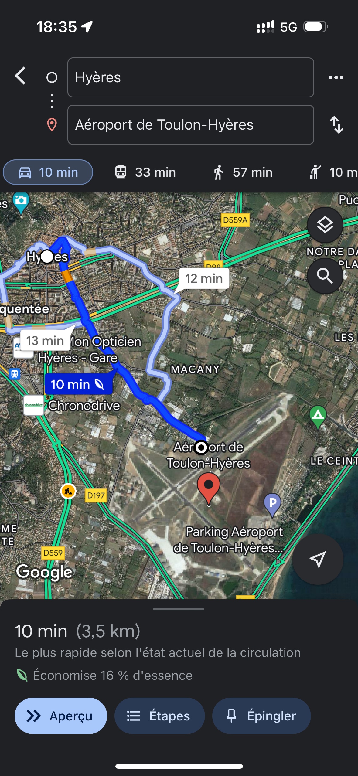 J'adore ce petit aéroport ! On ne perd pas de temps, ni au départ ni à l'arrivée, il y a toujours des places pour se garer à proximité. Les bus et taxis vers Hyères ne subissent pas d'embouteillages, on est en 10mn au centre ville, où à 5 mn du magnifique port.