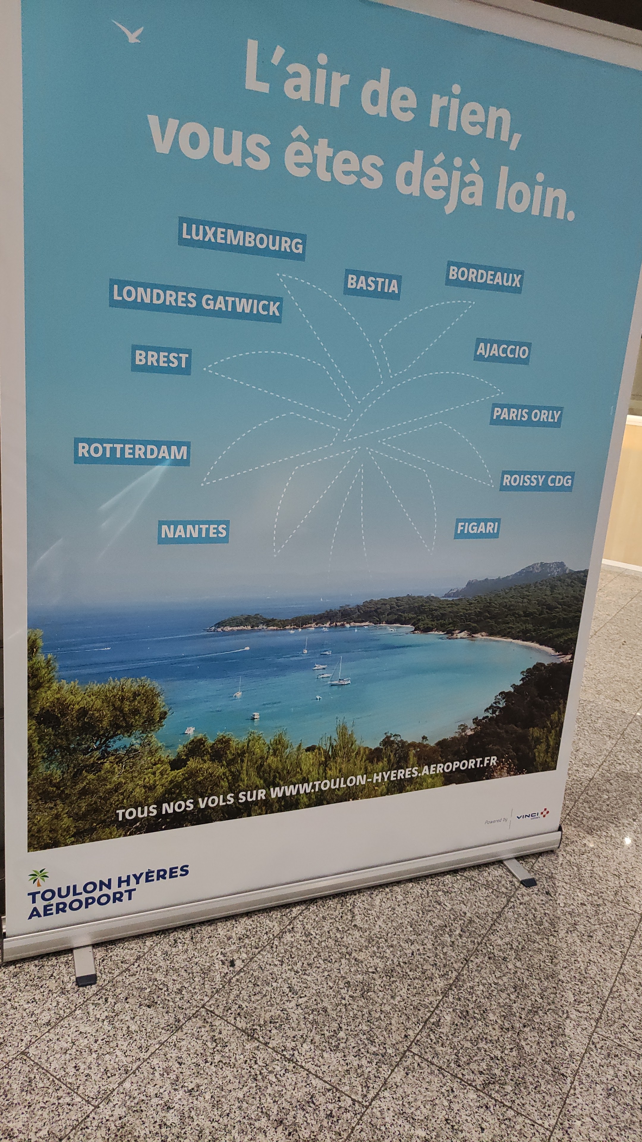 Une excellente image pour les petits aéroports français que celui de Toulon-Hyeres ! Il est familial. Il est beau, bien entretenu, avec un vaste parking et toutes les prestations complémentaires s'y trouvent. On se trouve à l'opposé de l'aéroport de Marseille qui est une honte à tous les niveaux et la clientèle qui le peut préfère partir ou atterrir à Nice ou à Toulon . Ici, on y trouve un très bon accueil avec les hôtesses efficaces qui nous renseignent sur les vols, mais aussi sur l'industrie hôtelière Hyeroise et les divers divertissements qui se trouvent dans la région. Une seule ombre au tableau, la restauration ! Il pourrait y avoir une petite brasserie ou un restaurant pour déguster des plats de la région ? Et non point un simple relais de bouffe industrielle style SNCF caoutchouteuse en grève ! Pour mes lecteurs nordistes, suggestion émise par un chef d'entreprise d'Arras : il y aurait une vraie barraque à frites sur le parking à côté de l'entrée de l'aéroport, il y aurait foule et tout le monde serait content. Il est loin d'avoir tort...avec une petite mousse du ch'nord ! Néanmoins, mes félicitations à tous ceux qui contribuent à l'image positive de cet aéroport qui possède une âme !
